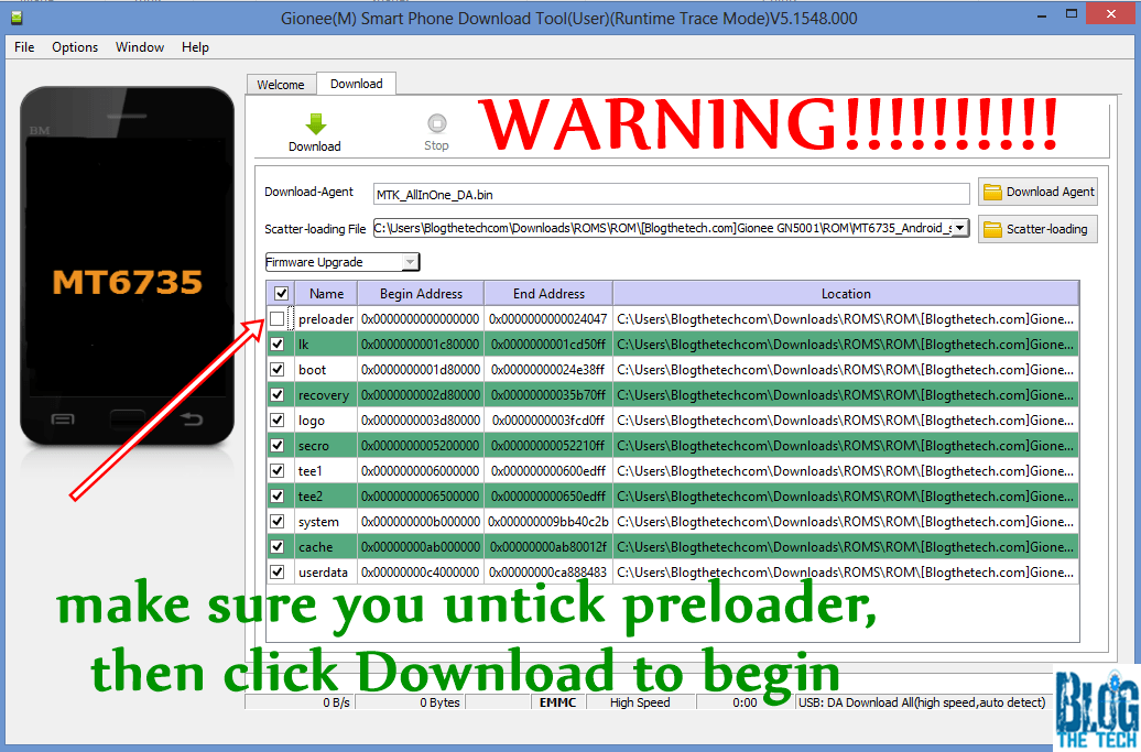 - Launch SP Flash Tool.