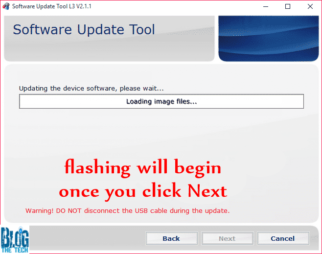 - Click Next to continue with the flashing of the firmware.