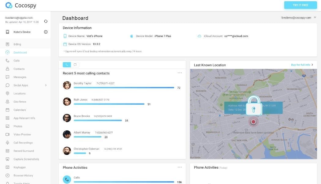 Along with that Cocospy can produce the replica of the recent call history so you will be able to find out the different people calling and the top five callers who most frequently call on this number.